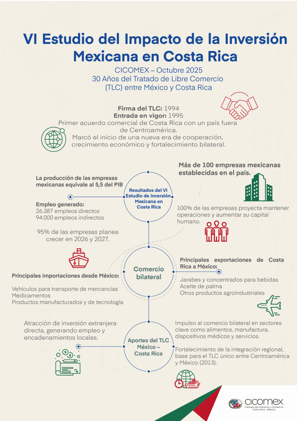 Oct 13, 2025 | Noticias de Hoy Empresas mexicanas en Costa Rica superaron ventas por encima de los US$5.300 millones – Revista Summa Más de 100 empresas mexicanas en Costa Rica generan 26.387 empleos directos y 94.000 indirectos. Por Revista Summa La Cámara de Comercio México–Costa Rica (CICOMEX) conmemora el 30 aniversario de la firma del Tratado […]